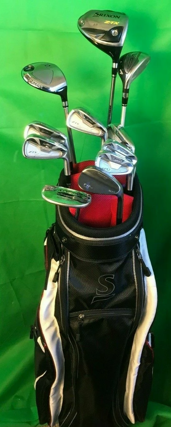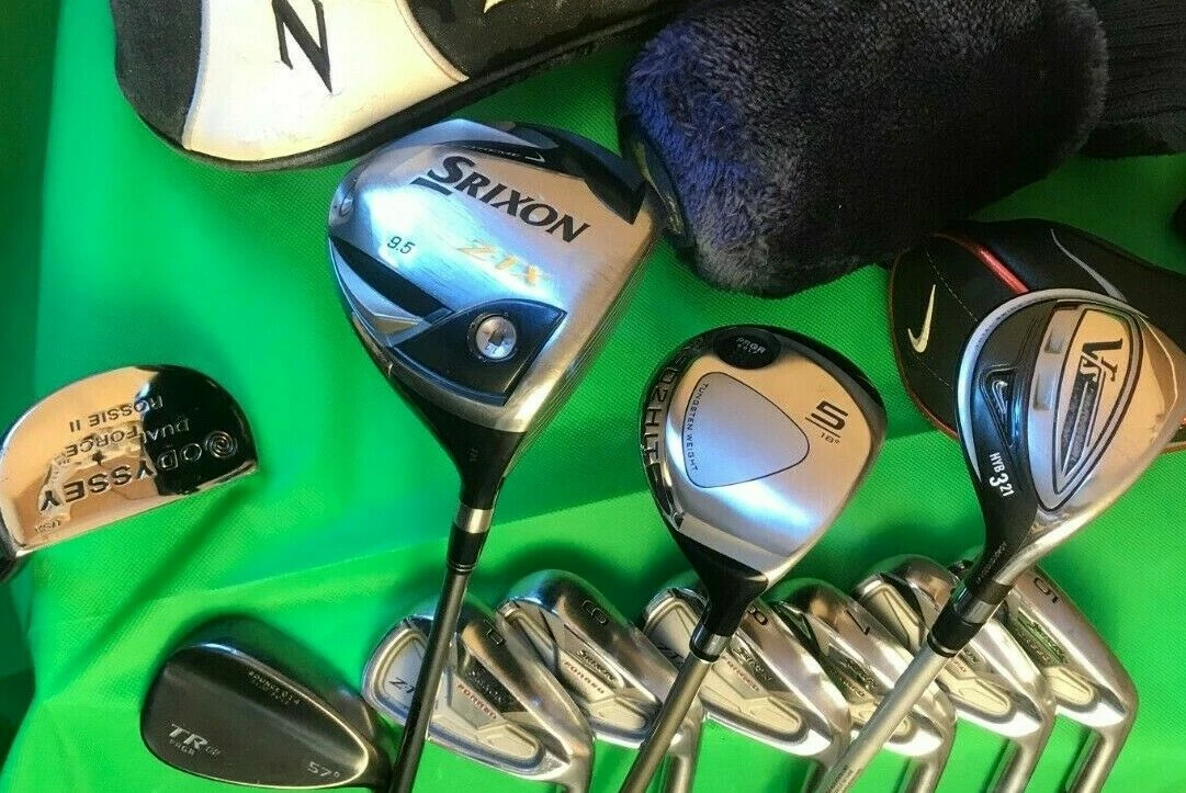 Set of Golf Clubs Srixon Z-TX Irons 5-PW Driver Wood Nike Hybrid Odyssey + Bag
